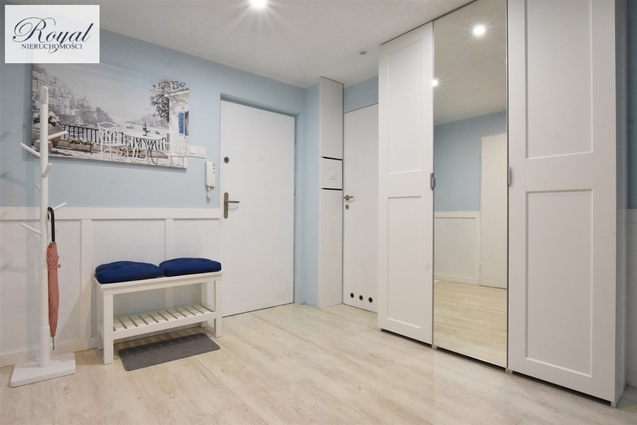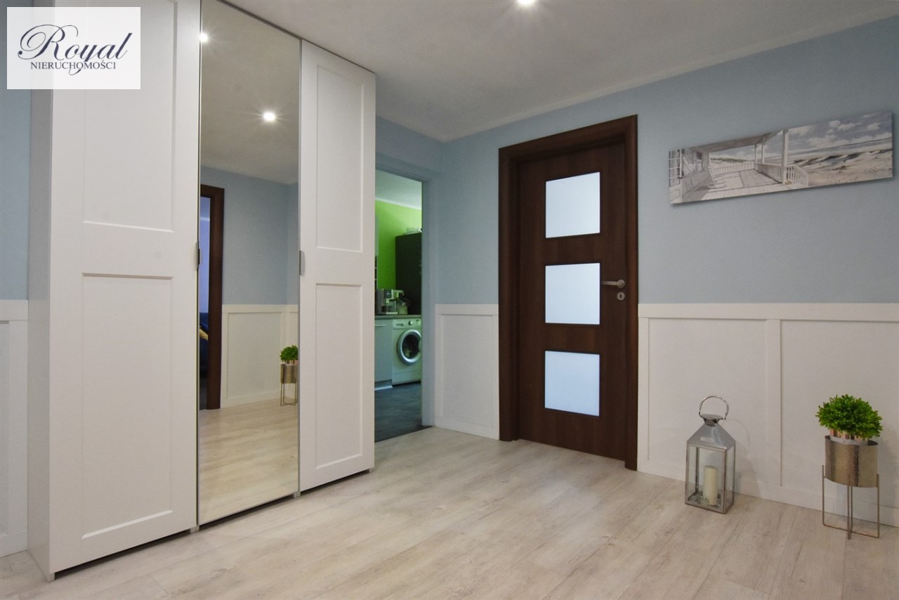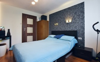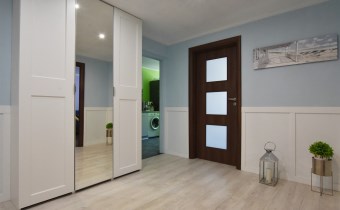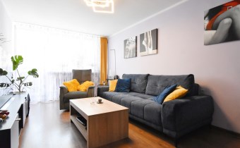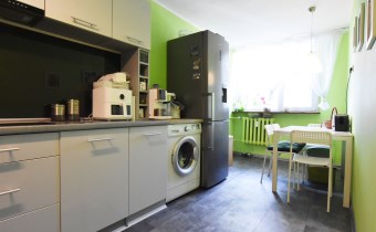 Mieszkanie w bardzo dobrym stanie, ponad rok temu przeszło remont. Mieszkanie pozbawione jest instalacji gazowej. W salonie komplet wypoczynkowy i TV. W sypialni duże łóżko i TV. Przestronna kuchnia w zabudowie ze sprzętem AGD oraz stołem jadalnym. W mieszkaniu duża komórka lokatorska spełniająca rolę garderoby. Okna PCV, na ścianach gładzie, na podłogach panele. W łazience duża kabina prysznicowa. Ogrzewanie centralne miejskie, ciepła woda z bojlera elektrycznego sterowanego na Wifi. Dodatkowy domofon na piętrze.