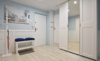 Zlokalizowane zostało na 1 piętrze bloku z 2 windami. Składa się z 2 niezależnych pokoi, oddzielnej dużej kuchni, łazienki z wc, komórki wewnątrz mieszkania i przedpokoju o łącznej powierzchni 59,90 m2. Do mieszkania przynależy duży balkon.