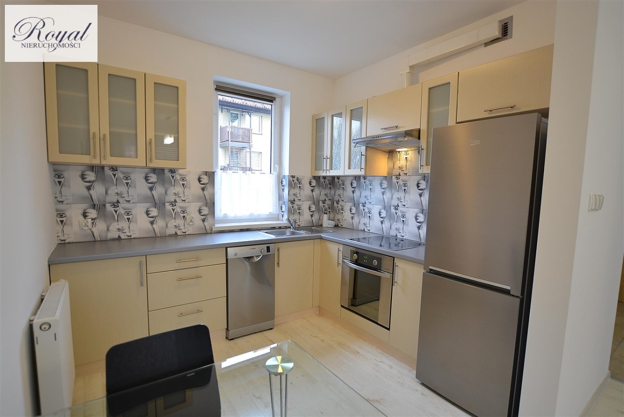 Mieszkanie dobrym stanie technicznym, umeblowane, kuchnia w zabudowie wraz ze sprzętem AGD (lodówka, zmywarka, piekarnik, płyta grzewcza), w salonie sofa, stół jadalny z krzesłami, w sypialni łóżko i garderoba, łazienka w nowoczesnej glazurze z kabiną prysznicową i pralką.